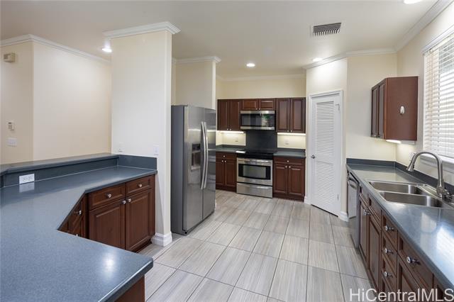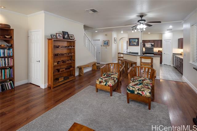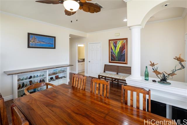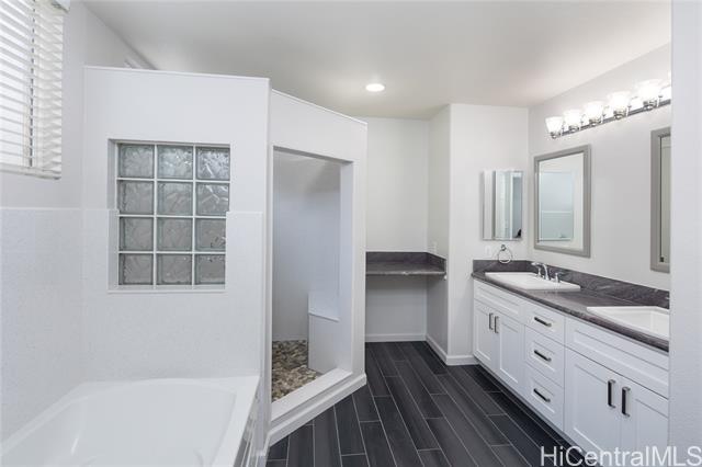- OPEN HOUSE 3/8, 1-5pm!! Here is your rare opportunity to own an "Opus" model in Kapolei Knolls. This Spacious, Move in Ready home boasts a Dual Central AC system, Primary Bedroom suite on the first floor with direct access to covered patio, large walk-in closet, remodeled bathroom w/ soaking tub, and double vanities, formal living and dining room, remodeled half bath and a luxurious kitchen with stainless steel appliances. The second floor has an additional Primary Suite with it's own lanai, open space family room w/lanai, upgraded full bathroom, 3 additional bedrooms and 42 PV Panels. This is the perfect home for a large family or mutli-generational living. Just a short drive to Ka Makana Alii mall, UH West Oahu, Costco, Target, and lots of new Restaurants. Don't miss this opportunity to own the largest floor plan home in the Kapolei Knolls!