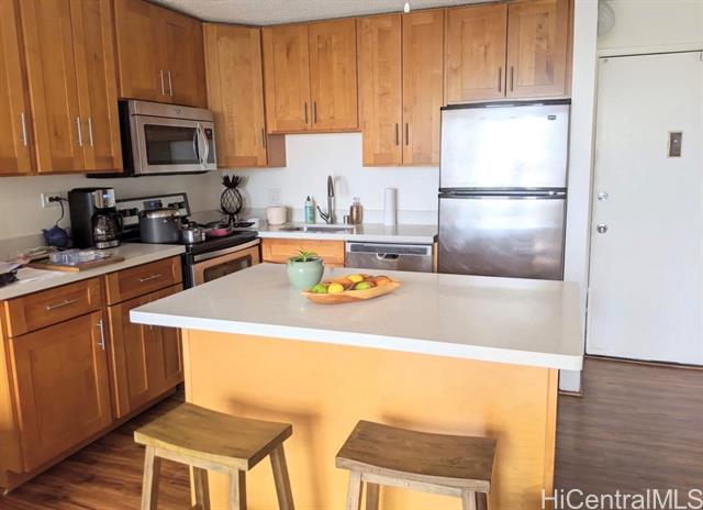 - Welcome to Four Paddles in the heart of Waikiki! This well-maintained 1-bedroom, 1-bathroom condo with 1 assigned parking stall offers the perfect blend of comfort, convenience, and island lifestyle. Located on a higher floor, this bright and breezy unit features an open living area that extends to a private lanai—perfect for relaxing and enjoying the tropical city and ocean views. The functional layout maximizes space and natural light, creating a comfortable retreat in one of Honolulu’s most desirable neighborhoods. Four Paddles is a secure, pet-friendly building known for its excellent amenities, including a pool, hot tub, sauna, BBQ area, and guest parking. With secured entry and resident manager on site, residents enjoy both privacy and peace of mind. Just minutes from Waikiki Beach, world-class shopping, dining, and entertainment, this condo places you in the center of it all while still offering a peaceful place to call home. Whether you’re looking for a primary residence, vacation getaway, or investment property, this unit offers exceptional value in a prime Waikiki location.