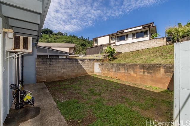 - Move into this ideal location in Pearl City that is priced well. This 3-bedroom and 1 1/2-bath attached home awaits you with open living space into a galley stlye kitchen. A spacious 2-car enclosed garage and workshop are ideal for storage and additional parking space. Features PV system with fully paid lease will reduce your electricty costs. This large yard is great for BBQ on the weekends with family and friends. There is extra space for parking around this property for your family and guests. No maintenance or association fees. Your close to the shopping centers, highway access, and restaurants.