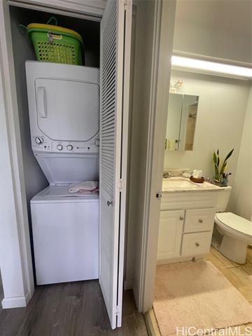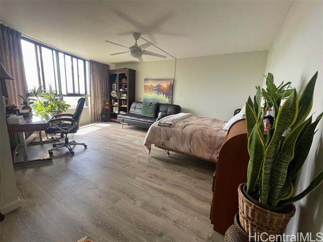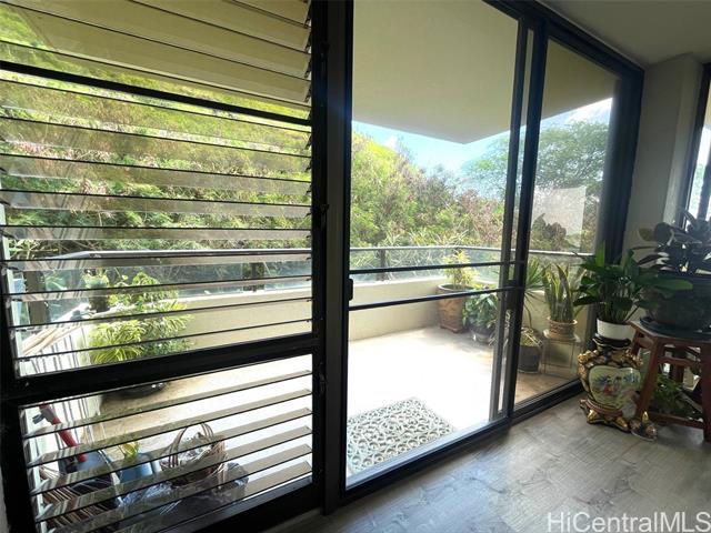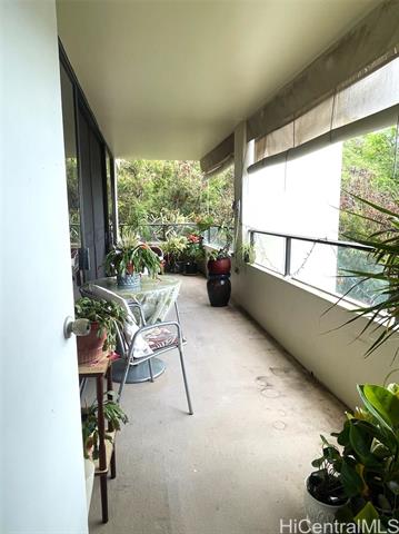 - TWO LANAIS are major features of this CORNER unit designed to enjoy dining and gardening while taking in marina and ocean views, colorful sunsets and even a glimpse of Diamond Head. Wonderful ventilation embraces this two-bedroom two bath unit surrounded by sights and sounds of mother nature. Sliding doors from Living Room provide direct access to lanais. Versatile floorplan with lots of space for dining, living and entertaining and separate nook off kitchen with passthrough bar. Large Primary front bedroom also has direct access to main lanai, double set of closets with mirrored sliding doors, double sinks and separate tub shower and toilet area. Back bedroom enjoys cool mauka breezes and convenience of bathroom and laundry appliances in adjacent hall. Two assigned side by side full size stalls, extra storage locker and location at end of floor next to exit stairwell adds to the PRIVACY and QUALITY of living in this special corner. Inviting circular driveway, loading zone next to lobby entry, pool, barbecue, exercise and meeting/social room, lots of guest parking enhance living in this distinctly designed, well-maintained project which has already undergone major retrofitting.