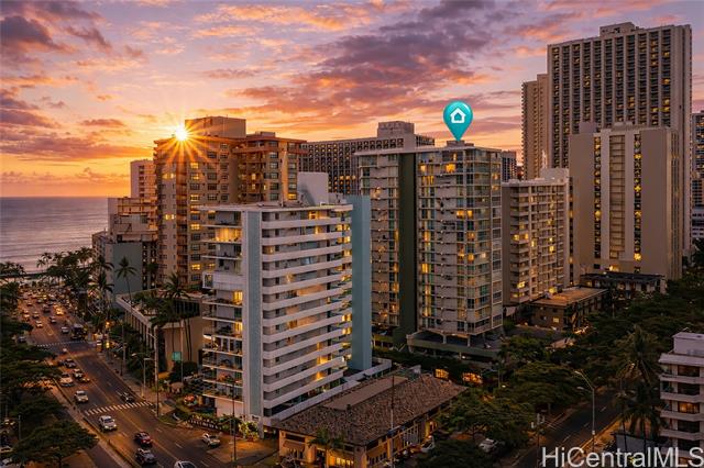 - Experience the quintessential Waikiki lifestyle in this centrally located residence just one block from world-renowned beaches and surf breaks. This spacious unit offers panoramic views and an open-concept, light-filled layout within a boutique building featuring only four units per floor, open-air hallways, a tiled pool, and a BBQ area. Recent property upgrades include newly updated plumbing and modern fixtures, fresh interior paint, a new dishwasher, and an updated AC system. The sale includes one covered parking stall. Located in close proximity to Kapiolani Park, tennis courts, and the Waikiki Shell, this property provides easy access to the best of Honolulu. 30-day minimum rentals are allowed. This is a leasehold interest with the lease secured through 2046. Monthly fees are as follows: HOA $1,028.41 | SA $672.05 | Cable $36.80 | Lease Rent $667 = $2,404.26 total per month. Come see your new opportunity today!