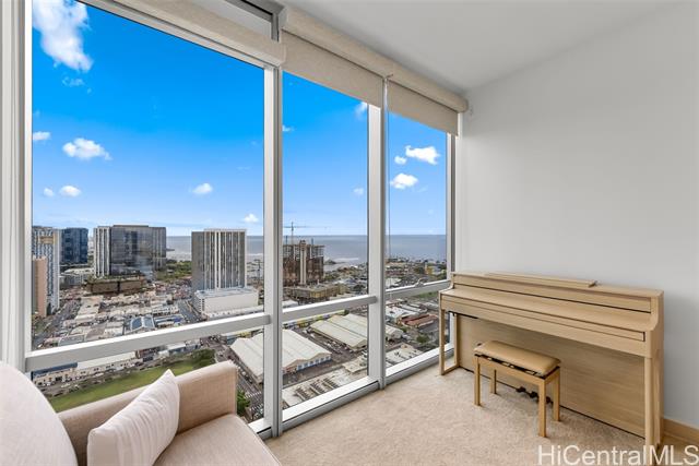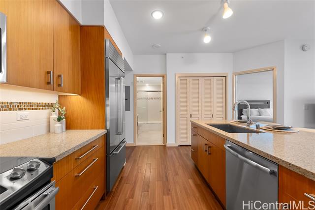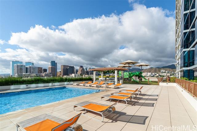 - Experience elevated urban living from this 40th floor Penthouse at Keauhou Place. This meticulously maintained 1-bedroom features soaring 9'1" ceilings and floor to ceiling windows that bring in abundant natural light and frame vibrant city and ocean views. The kitchen features a Sub-Zero refrigerator, stainless appliances, and quartz countertops with ample cabinet space. Efficiently stacked full-sized washer/dryer and a tankless water heater leaves room for additional storage. Keauhou Place is PET-FRIENDLY, 100% insured, and offers great amenities including a pool, hot tub, fitness center, BBQ areas, recreation spaces, EV charging stations. A secured & well-managed building conveniently located near SALT, Downtown Honolulu, Ward Village, and Ala Moana Beach Park, with easy access to shopping, dining, entertainment, and recreation. An exceptional opportunity to enjoy urban island living in Kaka'ako!