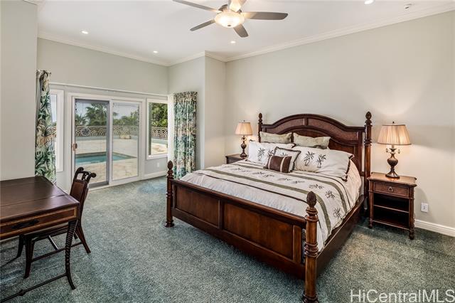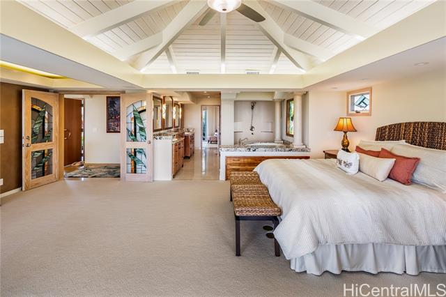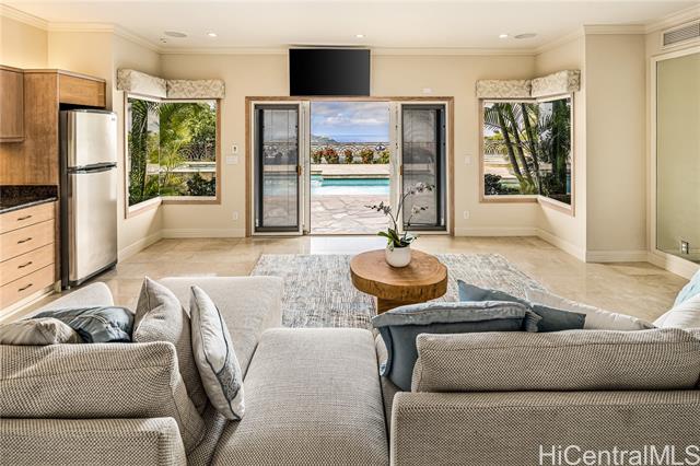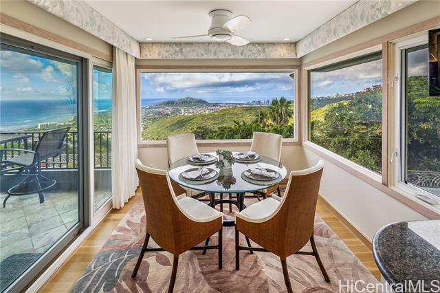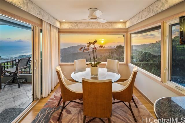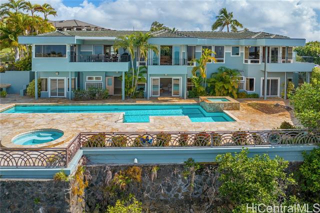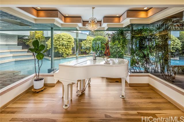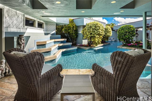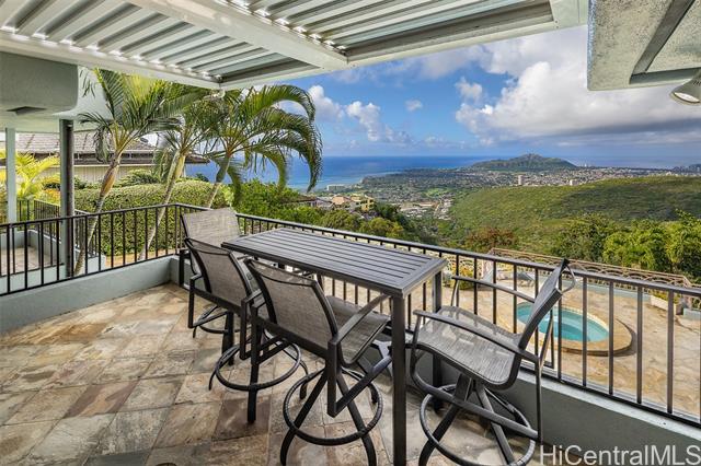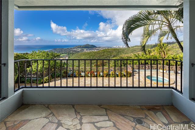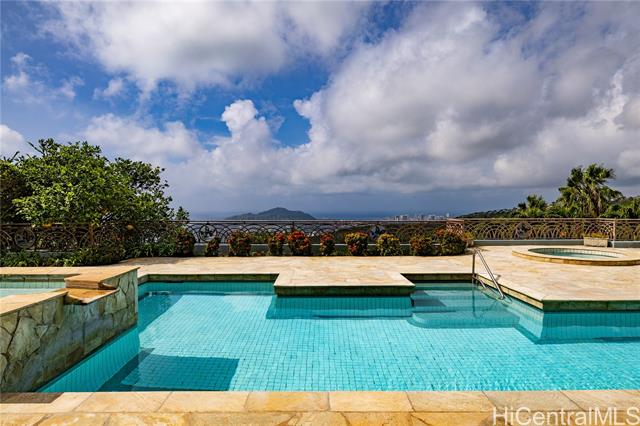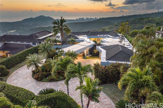 - Fee simple .53 acre legacy estate in premiere Waialae Iki V Gated Community. Designed by renowned architect Fritz Johnson, Sr. and Philpotts interiors. With newly installed 72 panel PV & 4 Tesla Powerwall system in 2025, this stunning south Diamond Head-facing residence offers breathtaking panoramic ocean, sunrise, & sunset views, flooding with natural light during the day and showcasing glittering city lights by night. The thoughtfully designed classic floor plan features a private interior courtyard with central waterfall, afternoon tea deck, exotic landscaping, separate maid’s ADU quarters, private terraces, home theatre, and more. Every detail reflects exceptional craftsmanship, from the French crafted copper and koa entry doors, to the custom Hawaiian stained glass and handcrafted koa and mango built-in cabinets, complemented by recessed lighting and quality appointments throughout. Bella Vista is a truly iconic creation and a masterpiece that stands as a legacy development gracing the Waialae Iki V mountainline. Outside, discover a lushly landscaped oasis with a resort-style pool. The prime Waialae Iki V location puts you moments away from premier dining and shopping.
