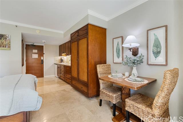 - Beautiful Boutique Hotel with Legal "Short Term Vacation" Rental! This building is sophisticated and classy and just the place people will want to return again and again as the hotel did a fantastic remodel and update in 2020 with attention to detail like lemon water by the pool, updated hallways, doors, and lanais. Large studio includes a large kitchenette, bathroom, and lanai and is conveniently located on the same level as the pool and gym. The lobby has a stunning mezzanine that includes a bar, sitting areas and private meeting spaces with a luxurious vibe. Unit is in Luana Waikiki's Hotel rental pool but it is an optional choice to each owner. Lanai overlooks Waikiki parade route, a real delight! Perfect vacation rental that you will want to use yourself.