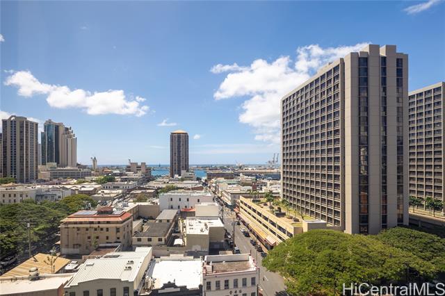- Downtown Honolulu awaits! This spacious 3-bedroom, 2-bathroom has over 1400 sq. ft. of living space, featuring floor-to-ceiling windows with stunning ocean, mountain, and city views. Enjoy easy access to Chinatown's dining and shops, and the Financial District. This building is pet-friendly and VA-approved. The building offers amenities such as pool, jacuzzi,, and a picnic area with gas grills. It comes with two covered side-by-side parking stalls and 24/7 security. This home is move-in ready or for you to customize or upgrade. Monthly fees: $1,294.15 plus $998.07 reserves. Don't miss this rare opportunity for urban island living. Schedule your showing today!