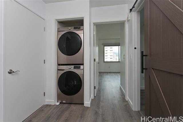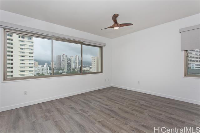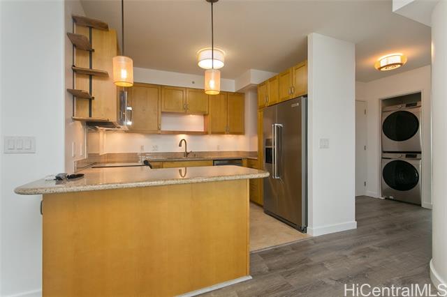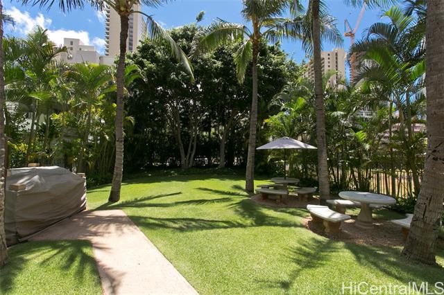 - Immaculate residence at one of Waikiki's most preferred luxury condos. Diamond Head side corner unit of only 4-units per floor. Newer Refrigerator, Dishwasher, Faucet Fixtures, Lighting Fixtures, Ceiling Fans and Remote-controlled Window Coverings, laminate flooring, washer and dryer in 2022. Freshly painted and professionally cleaned. Beautifully landscaped with tropical plants, pool, BBQ area in gated, secured private residence. Walking distance to all of Waikiki yet away from the traffic congestion.