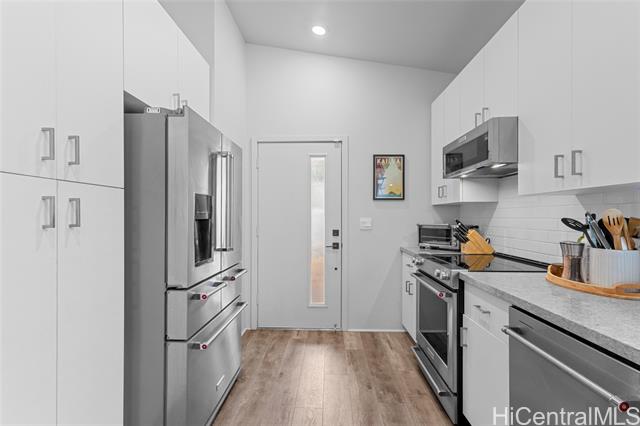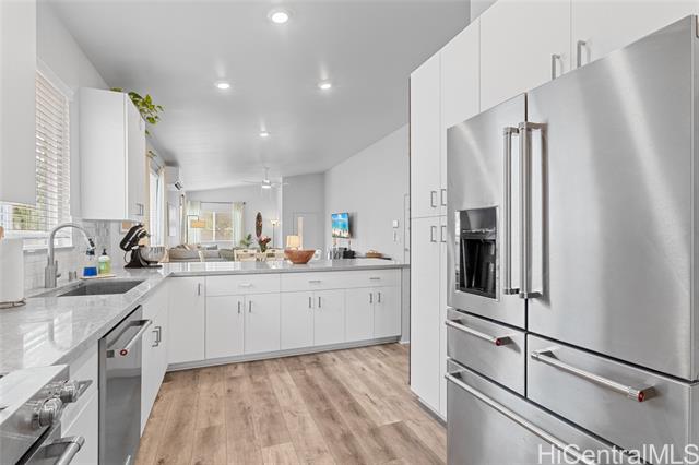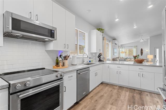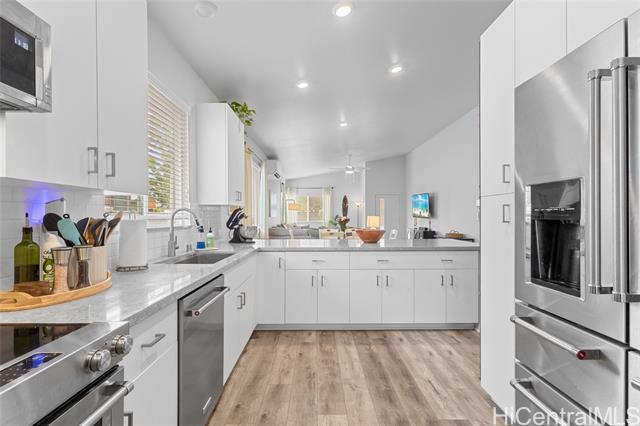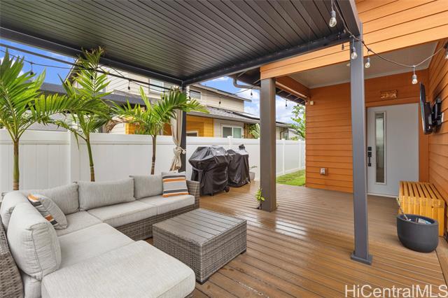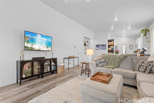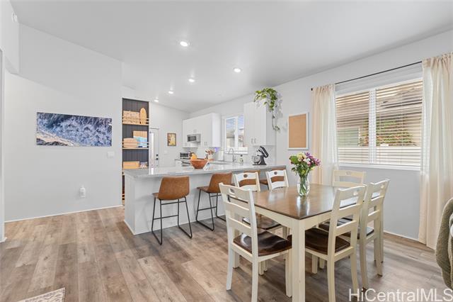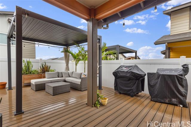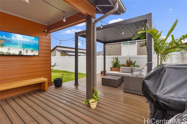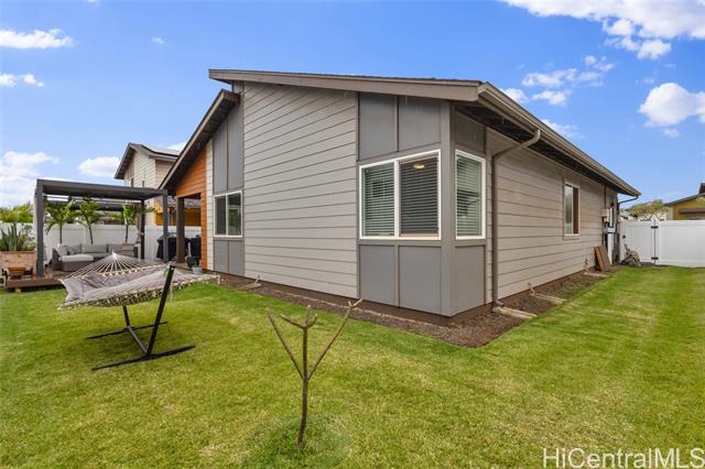 - Welcome to Hoopili! This 3 bed 2 bathroom home is exactly what you have been looking for and it checks all the boxes! The modern open concept living space with huge vaulted ceilings is filled with natural light and character which makes it feel like home. The kitchen includes plenty of storage space and a beautiful new cutting board wall. The three bedrooms are spacious and include split AC systems. The primary bedroom closet includes plenty of space and built-ins. Step outside into an absolute oasis with a pergola, deck, and ample yard space. Host plenty of family and friends outside for a BBQ or inside the home with all of the space. The 2 car garage has a laundry sink and a washer and dryer and still allows plenty of space. The home includes a security system as well as 18 leased PV panels and 1 battery. Conveniently located in one of the most desirable neighborhoods in the Ewa Beach/Kapolei area, you are literally minutes away from dining, golf courses, playgrounds, and you have access to Farrington Highway and H-1 for an easy commute. Schedule a showing to come see it before it's gone!