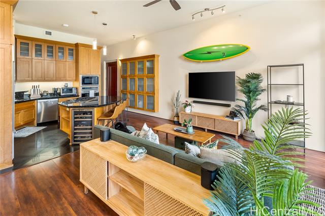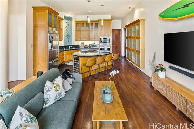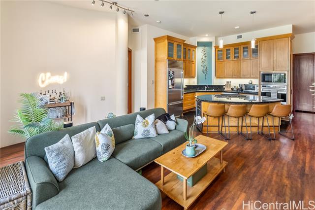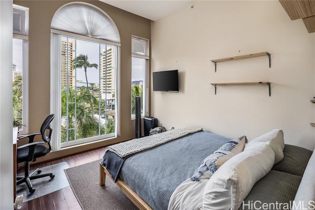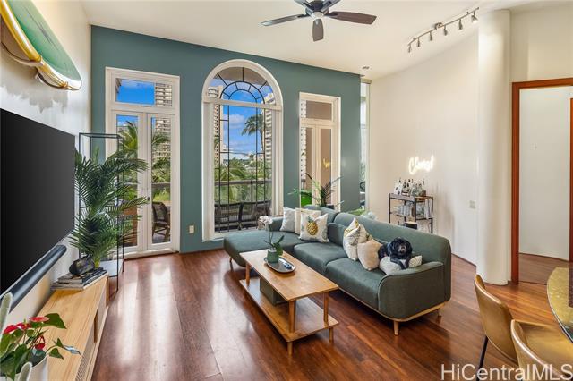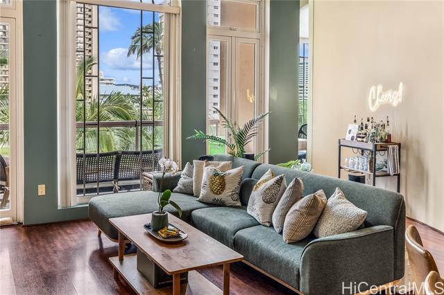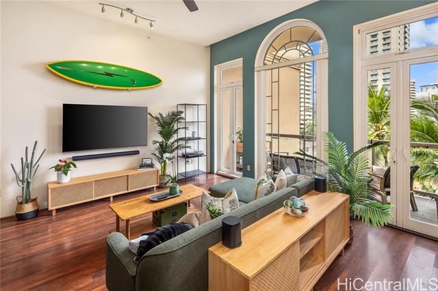 - Soaring ceilings & thoughtful design create volume & architectural presence in this inviting home. With just 36 residences, Loft at Waikiki stands apart for its boutique scale & character. Opportunities here are rarely available. Dramatic 12-foot ceilings & expansive 11-foot cathedral windows in the living room & primary bedroom give the space an open, loft-inspired feel the seller described as “stunning” upon entry. A 4’ x 8’ solid-core Art Deco–style front door & 8-foot interior openings reflect solid construction & architectural detail throughout. VA assumable loan available at 2.75% (balance approx. $816,742, as of 03/18/26). New Bosch dishwasher & LG washer/dryer are appreciated for those on the go, while generous storage appeals to home chefs. In 2025, sprinkler & fire alarm systems were updated with no assessment. Residents enjoy a rare 65-foot lap pool, BBQ areas & generously sized parking stalls. Located on a tree-lined street in the heart of Waikiki, this home offers easy access to the beach, marina, dining & shopping. Fido is welcome (please verify).