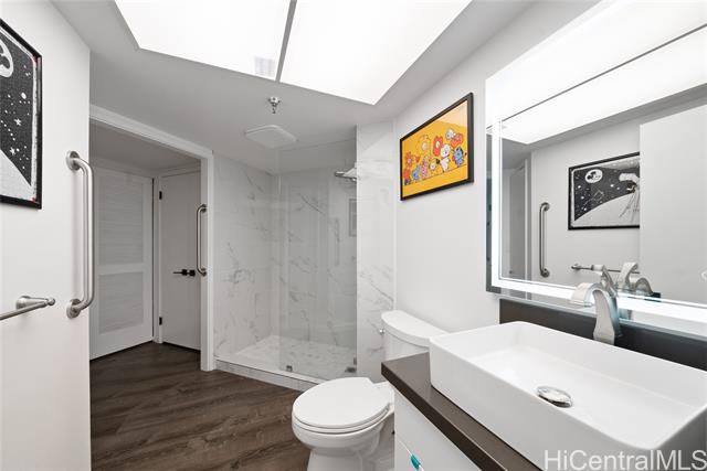 - Rarely available gem in a great location! The unit features a large 2 bedroom, 2 bathroom with amazing views of the ocean and the city. Located a few minutes from Ala Moana and Downtown Honolulu. Enjoy your luxury amenities in the building which features a pool, BBQ area, tennis court, fitness areas and more! Beautifully and tastefully upgraded bathrooms and kitchen ready for you. Unit also features 2 covered garage parking stalls which includes storage locker. Maintenance fees includes cable, internet and central AC.